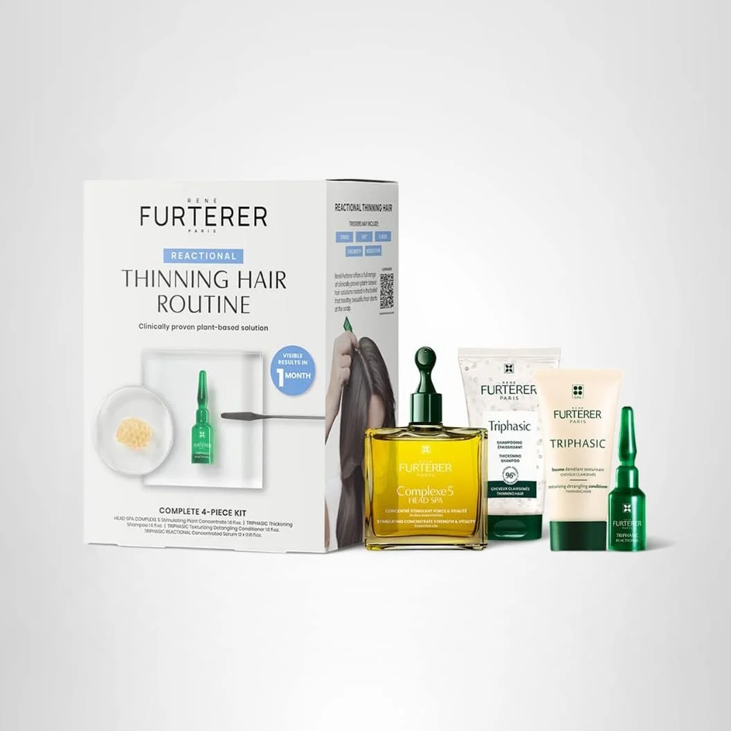 This 4-step regimen targets the root causes of sudden, temporary hair thinning, which can be triggered by factors such as stress, illness, childbirth, or seasonal change. Featuring a blend of plant-based botanical extracts, essential oils, and vitamins, these clinically-proven formulas are designed to optimize scalp health and encourage stronger, thicker-looking hair. Visible results in just one month.